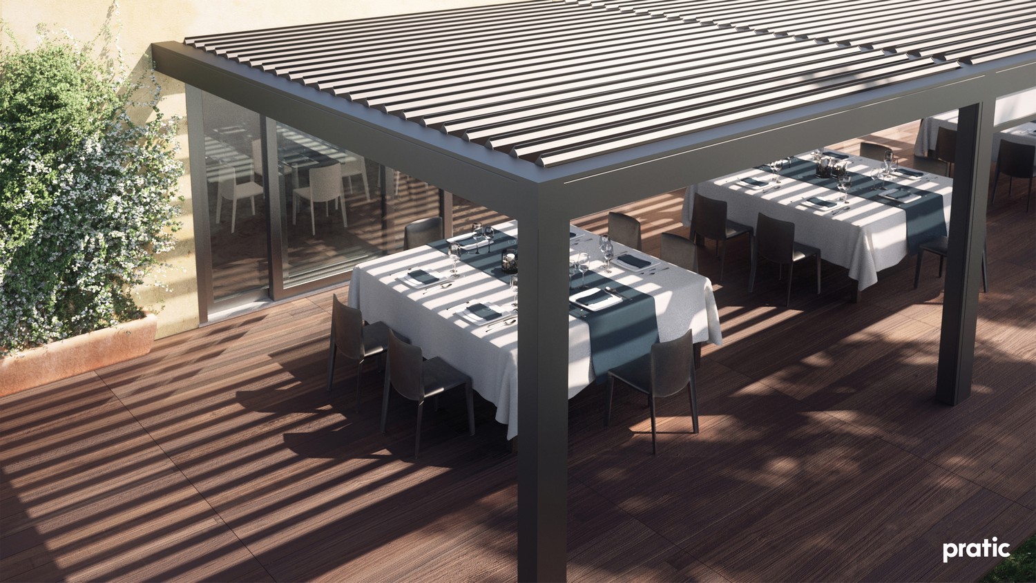 Pratic a Udine produce tende da sole, tende da esterni, coperture per esterni, tende a rullo, pergole bioclimatiche, strutture impermeabili da oltre 50 anni.