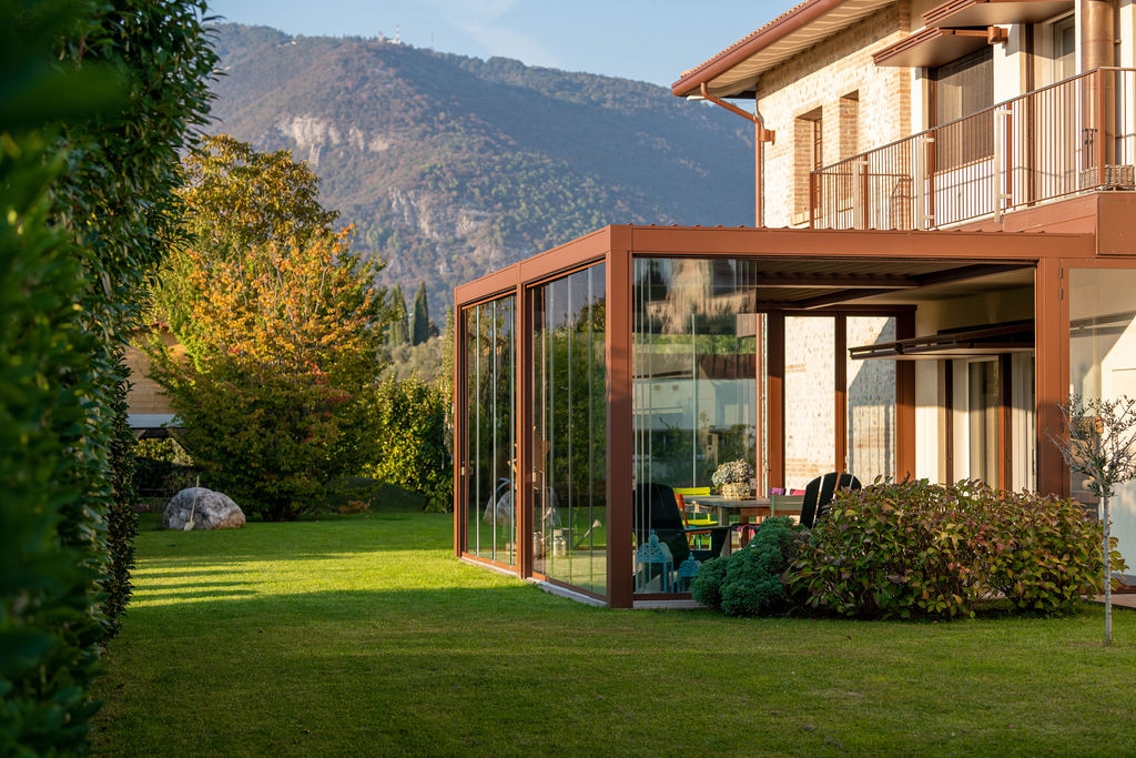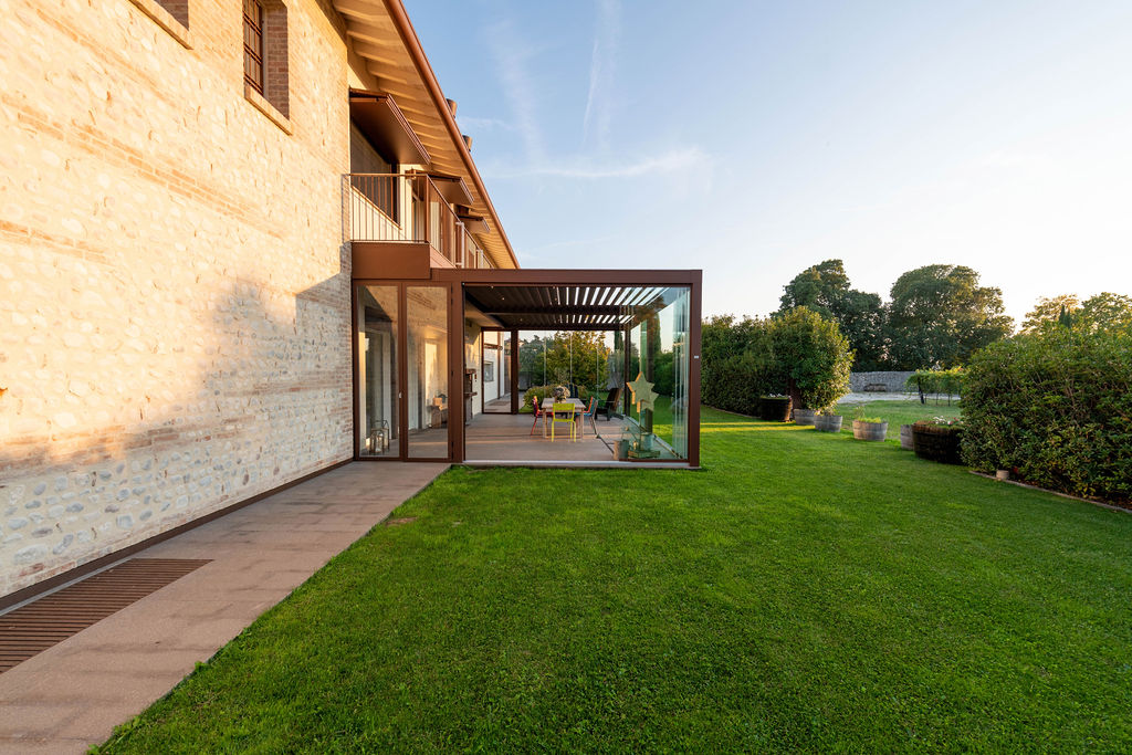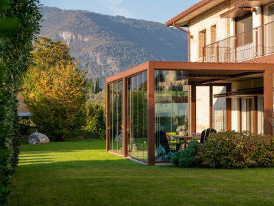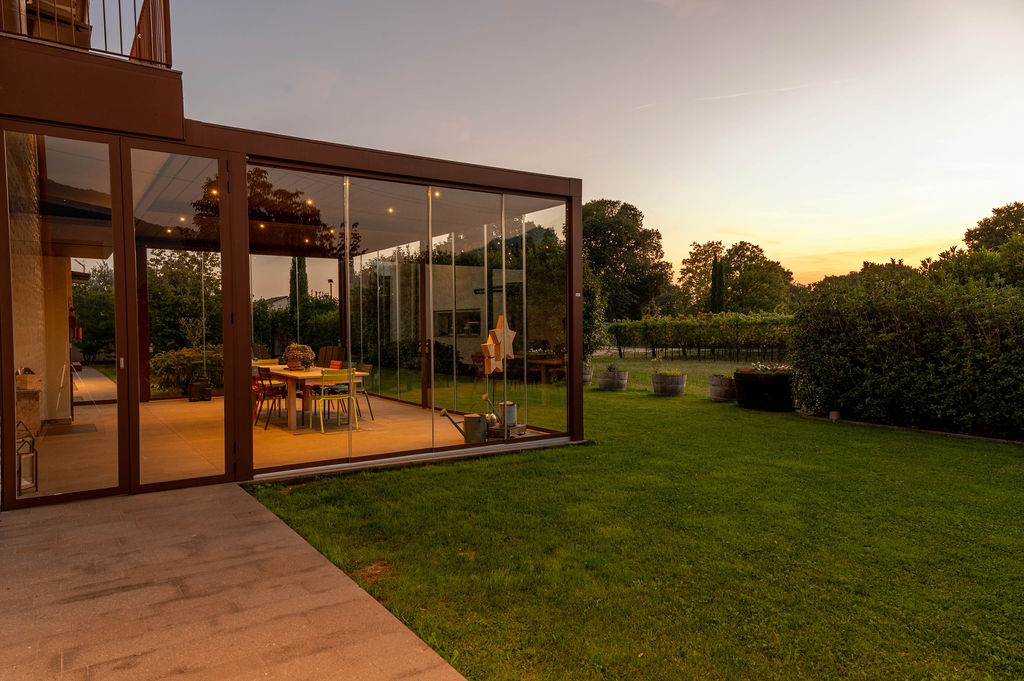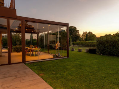 I nostri clienti volevano aumentare lo spazio abitativo della loro casa rendendo fruibile in tutte le stagioni un’ampia area esterna, orientata verso ovest e quindi ideale per ospitare aperitivi e cene all’aperto.