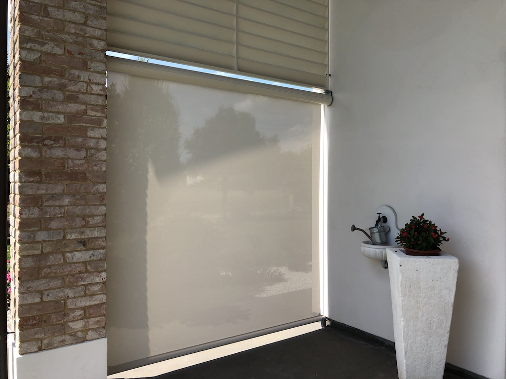 Nella villetta di un nostro cliente a Padova abbiamo installato delle tende di uno speciale tessuto filtrante che consente di mantenere la visibilità sempre verso la parte più luminosa. Il problema della privacy? Dimenticato!