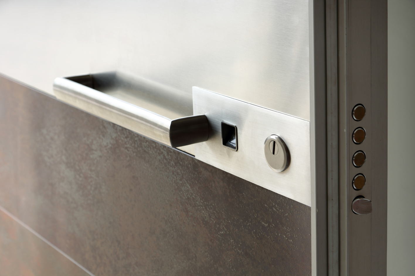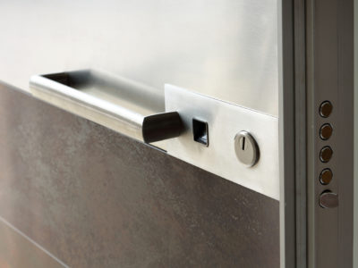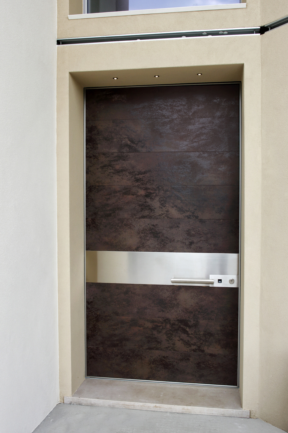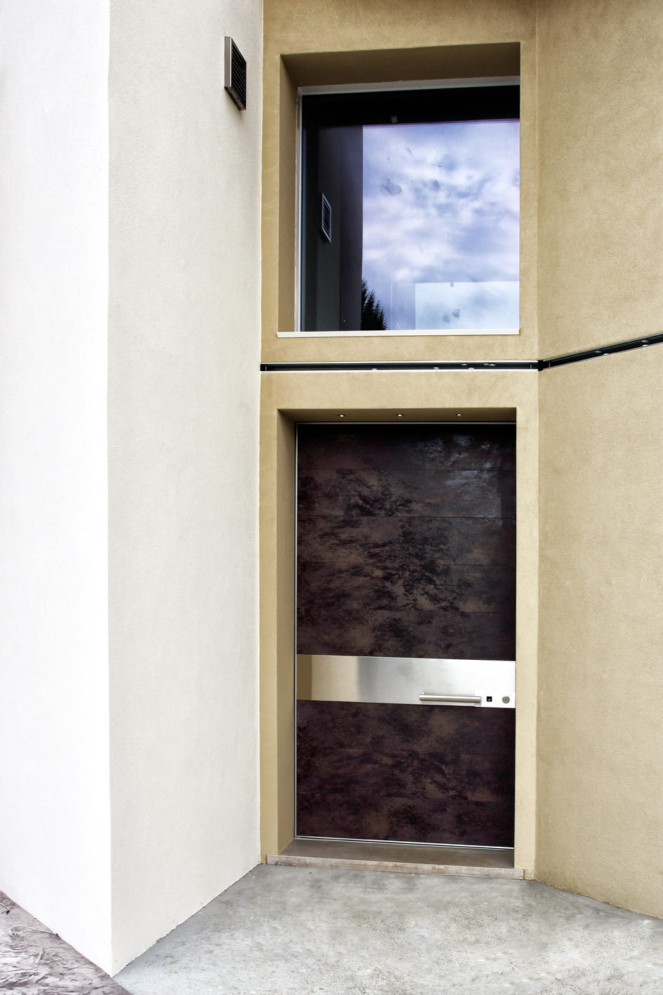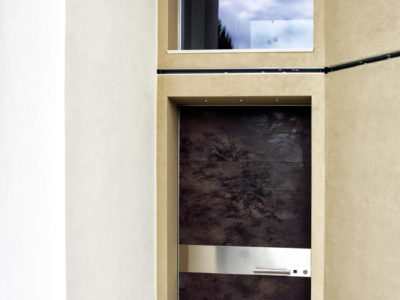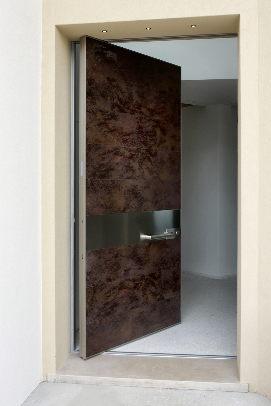 L'esigenza del cliente era quella di avere un ingresso ad anta unica da 150x270 cm per dare continuità all infisso ad unica specchiatura posizionato sopra . problema risolto con SYNUA di Oikos. Porta a bilico con effetto rasomuro interno con maniglia complanare e in questo caso fornita con serratura elettronica ed apertura con impronta digitale.
